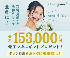 顧客満足度98.3%のハナユメ。電子マネー15万3,000円がもらえるお得な式場探しキャンペーンも開催されています。